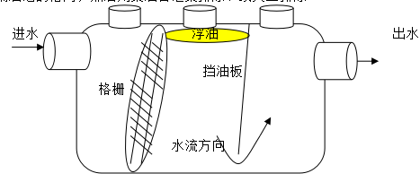 玻璃鋼隔油池為“三級”無動力油水分離裝置,通過內部特殊裝置,當含油污水流入第一級時,雜物框將其中的固體雜物(菜葉、飯渣等雜物)徹底截流;進入第二級后,利用水流的動能,連續碰撞,由小變大,由此加速運動,使不同比重的油實現分流和分層;進入第三級后,廢水沿斜管向下做紊流運動,利用密度差使油水分離;最后從溢流堰流出,再經出水管收集排出。而水中的油珠沿斜管的上表面集聚向上流動,浮在隔油池的槽內,然后用集油管匯集排除、或人工排除。